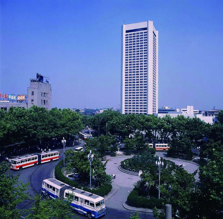 1978年起,随着国家一系列政策相继出台,改革开放的浪潮在中华大地涌动,来华技术投资、观光旅游者与日俱增。同年10月9日,时任中共中央副主席、国务院副总理邓小平对民航和旅游部门负责人说,“民航、旅游这两个行业很值得搞”,并指出要利用侨资、外资兴建一批旅游饭店。金陵饭店便是乘着这一浪潮,利用侨资建设的全国首批大型旅游涉外饭店之一。1983年,由香港巴马丹拿集团设计的金陵饭店建成,凭借37层、110米的高度在当时问鼎“中国第一高楼”。