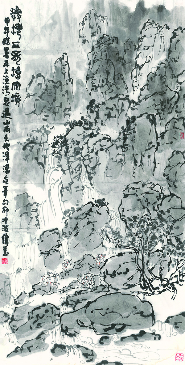顾伟玺《渔湾三龙潭雨境》 69cm×135cm