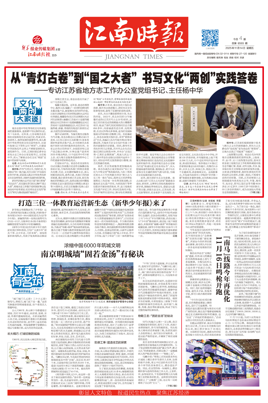 地方志是中华优秀传统文化传承发展的重要载体,连接着中华民族的历史、当下与未来。近年来,江苏省地方志系统切实发挥地方志记录历史、传承文明、资政育人、服务发展的重要作用,深入推动中华优秀传统文化创造性转化、创新性发展(以下简称文化“两创”),在建设中华民族现代文明上不断彰显新担当、展现新作为。日前,江南时报记者专访省地方志工作办公室党组书记、主任杨中华,深入了解省志办在文化“两创”实践中的深耕与硕果。