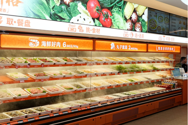 除了丰富的汤底以外,鱼你在一起更以“火锅级标准”重新定义烫捞食材。一方面创新引入梭子蟹、青口贝等高品质海鲜,搭配肉类、时令蔬菜及特色豆制品,形成丰富食材矩阵;另一方面在门店设置长达6米的开放式菜品展示柜,直观呈现食材状态,为消费者提供多样化的选择。