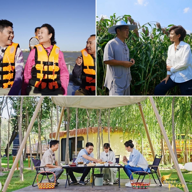 晚会始终坚持“以农民为主角”,将镜头对准“三农”战线坚守奉献的工作者,讲述他们的奋斗故事。镇赉三代人科研接力将“八百里瀚海”盐碱荒原化为万亩茭白“丰收粮仓”,灵武“治沙英雄”王有德带领民兵连倾注半生心血誓将“沙海变绿洲”,仁怀育种专家团队为36万亩红缨子高粱装上中国“芯”,让贫瘠山地长成丰饶梯田,都是“绿水青山就是金山银山”理念的生动实践;“金都”招远线上拓宽“金色云”线下推动“黄金+农文旅”深度融合,潮州茶产业发展一手抓“饮茶+”文化一手抓种质资源开发,荣成55万亩海洋牧场深耕“蓝色粮仓”,则展现了现代化农业高质量发展的磅礴力量。
