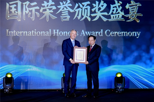德国前总统、全球中小企业联盟名誉主席武尔夫亲自颁奖