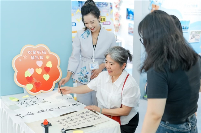 最富诗意的还当属诗词互动区。西晋张翰的《思吴江歌》吸引了一位包含诗卷气的女士驻足,她轻声吟诵着“秋风起兮木叶飞,吴江水兮鲈正肥”的经典诗句,并拿起毛笔,行云流水般地将这句诗落于纸上,感慨道:“这一刻,我仿佛与古人共饮了一江秋水!”