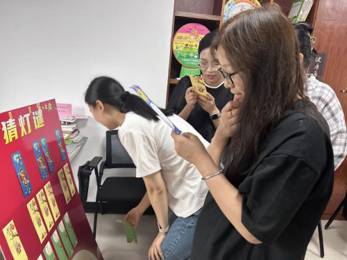 猜灯谜环节,大家认真琢磨,你一言、我一语地互相提示和讨论,不时为了一条谜语绞尽脑汁。答对谜题的居民欢欢喜喜地领取了一份小礼品,现场洋溢着欢乐、祥和、喜庆的气氛。