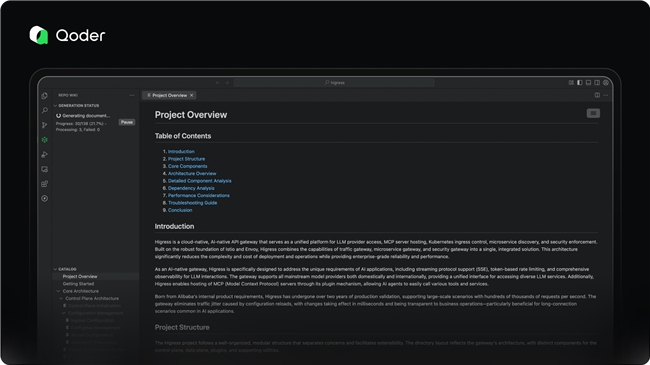 除了降价和支持支付宝付款外,Qoder在近期也升级了核心能力。以Repo Wiki为例,该功能一经上线就受到开发者的热烈响应。Repo Wiki能基于代码自动为项目生成结构化的文档知识库,让隐藏在代码中的经验性知识,变为团队可共享的显性知识,目前Repo Wiki支持共享、编辑和导出,方便团队把经验沉淀为可复用的工程资产。