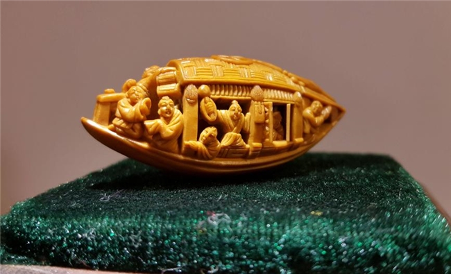 许老师:艺术来源于生活啊!我生在光福窑上村,山里的花花草草、太湖的荷花、船影,都是我灵感的源泉。比如《十二月花神》,我看到一套杯子的图案,联想到我们身边熟悉的花卉,就产生了创作的冲动。从设计到完工,花了一年多。过程中反复打磨,不满意就重来,直到完美。《核舟记》的灵感则来自太湖的船和北京故宫里那件震撼我的藏品。为了雕好门窗和船上30几个小人,我专门买了书参考,结合自己的想法,用最细的刻刀一点一点尝试。完成那一刻,那种注入灵魂的成就感,难以言表!这需要绝对的专注,心无杂念,慢慢雕刻。