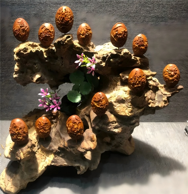 Q3:我们惊叹于您创作的《十二月花神》《十八罗汉舟》等作品的精妙神韵。作为创作者,您如何在传统题材中既保留核雕文脉,又融入自己的艺术理解?