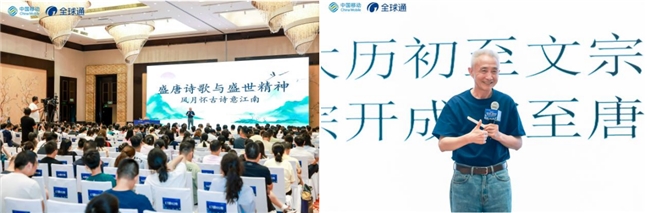 2025年9月27日,江苏移动全球通大讲堂在无锡君来洲际酒店成功举办。本次活动以“盛唐诗歌与盛世精神——风月怀古诗意江南”为主题,特邀知名文化学者戴建业教授担任主讲,与现场600余位全球通用户共赴一场穿越千年的文化对话。