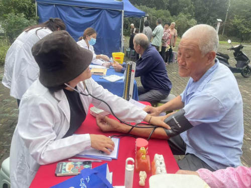 医护人员一边耐心细致地为居民提供免费测量血压、血糖、心率等基础健康检查服务,并针对结果给出个性化的健康建议。一边耐心倾听居民健康困惑,解答关于常见病、多发病的预防和治疗问题,特别针对入秋天气渐渐冷了,心血管疾病的日常用药管理与饮食禁忌进行了专业指导。