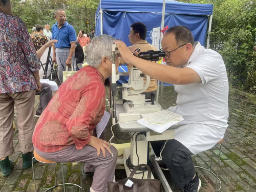 爱尔眼科医院医护人员携带视力表、验光仪、裂隙灯等专业设备,为居民提供全面眼科检查,耐心解答关于干眼病、白内障、糖尿病视网膜病变等各类眼部健康问题,并提供个性化护眼建议。经常耍手机的王叔叔被查出有干眼症的倾向,医生不仅开了缓解建议,还教会了他一套简单的眼部按摩操“原来看手机有这么多讲究,今天真的是上了一课,要感谢你们过来给我们看眼睛。”王叔叔笑着说。