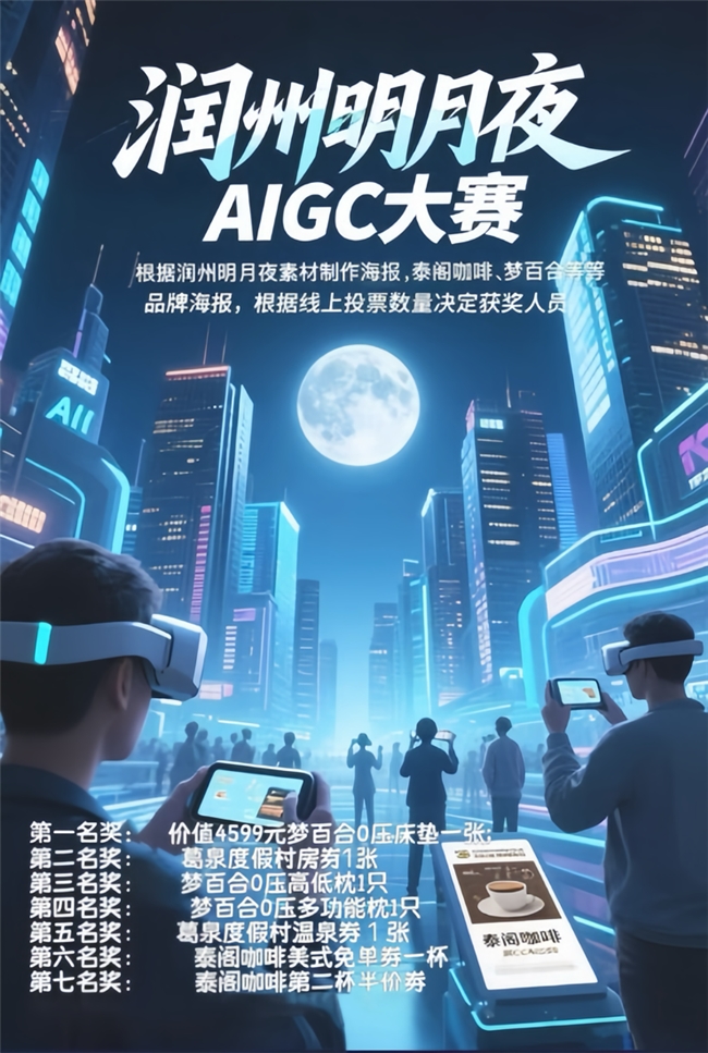 当下爆火的AIGC,正成为效率提升与企业增长的“核心引擎”。润州区顺势举办的AIGC大赛,吸引超百名选手踊跃参与,从醇香咖啡到地方特色好物,各大品牌商家纷纷借势发力,用AIGC定制创意海报,这些充满科技感与设计感的宣传内容,不仅让门店形象更贴近年轻消费群体,更打破了传统宣传的局限,为本地商业注入了前所未有的科技活力。