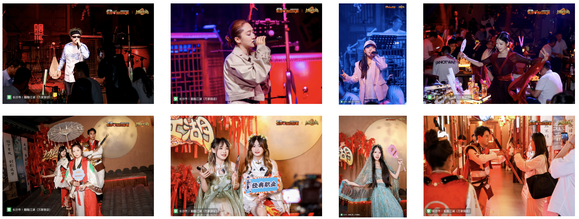 在胭脂江湖Livehouse,路过的游客仿佛被拉进《热血江湖》游戏现场,瞬间穿越。现场歌手表演与NPC剧情任务完美结合,让大家感受了一把在次元壁间反复横跳的绝妙体验。