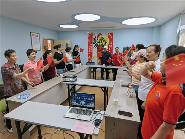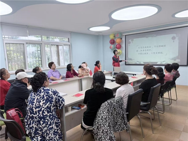 “海上生明月,天涯共此时——请对出下一句!”“举杯邀明月,对影成三人!”中秋古诗对对碰环节,银发长者与稚气童声同时抢答,一句句含“月”诗词在老少齐诵中穿越千年;“如果‘国’是令,请唱出带‘国’字的红歌!”韩师傅这位“五老”志愿者清亮开嗓,《我的祖国》旋律响起,大家挥舞着国旗与老人合唱,掌声、歌声融成跨代共鸣。