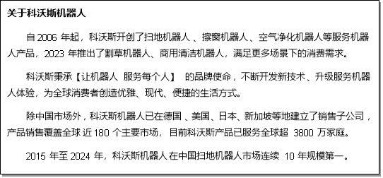 2023年科沃斯将技术发展聚焦于AI,启动“All in AI”战略到产品和经营,开辟了自研自然大语言模型算法与机器人AI应用融合的技术路线。