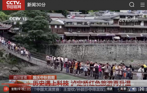 10月4日,央视《新闻30分》聚焦泸定桥景区,报道其运用元宇宙技术创新打造的“飞夺泸定桥”主题VR项目(《渡河纪》全感互动空间)。该项目通过沉浸式体验推动红色教育从单向宣讲向沉浸式转型,构建多维度体验,为红色旅游拓展了新维度,项目吸引游客4000余人次,实现收入30余万元。