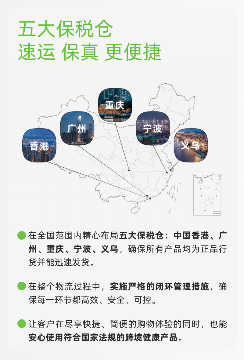 所有产品均通过“七查七看七对比”的二十一重筛选,Brillowel系列更是获得FDA、cGMP双重认证,从源头杜绝假冒伪劣。五地保税仓发货,80% 城市可实现“次日达”,新鲜高效送到家。