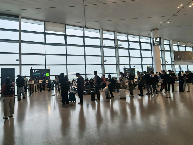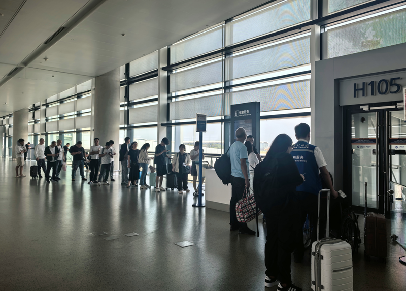 10月12日,上海浦东至义乌航线登机口排起长队。新京报贝壳财经记者俞金旻摄