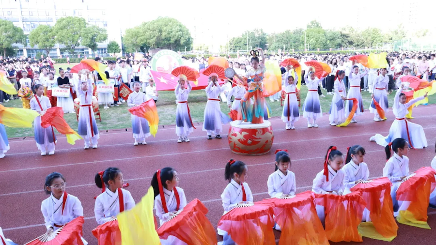 五年级扇舞跃动中国红,每一次扇舞开合,都是童心向党的赤诚。