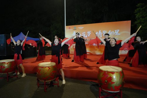 双节文艺汇演以“文化青春”“活力青春”“梦想青春”三大篇章串联全场。开场舞《中国龙》以刚劲舞姿点燃现场,激发观众热情。随后,文艺演出精彩启幕,打鼓表演《万疆》、民族舞《蓝色天梦》等节目轮番上演,鼓舞《中国威武》以欢快的节奏、舒展的舞姿,展现出居民们对美好时代的礼赞;儿童舞蹈《我还小》童趣满满,孩子们的天真表演萌化全场,娄江灯影以梦幻的灯影表演展现水乡文化魅力;非遗川剧变脸更是引得观众惊叹连连。期间,社区领导为4个社区授旗标识社团正式成立;对微网先锋进行授牌表彰,鼓励更多居民参与社区建设。表演最后,所有的团队学员邀请全场齐唱《祝福祖国》,将爱国氛围推向高潮,让大家在欢声笑语中度过了一个温馨祥和的双节时。