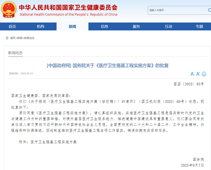 图:国务院关于《医疗卫生强基工程实施方案》的批复
