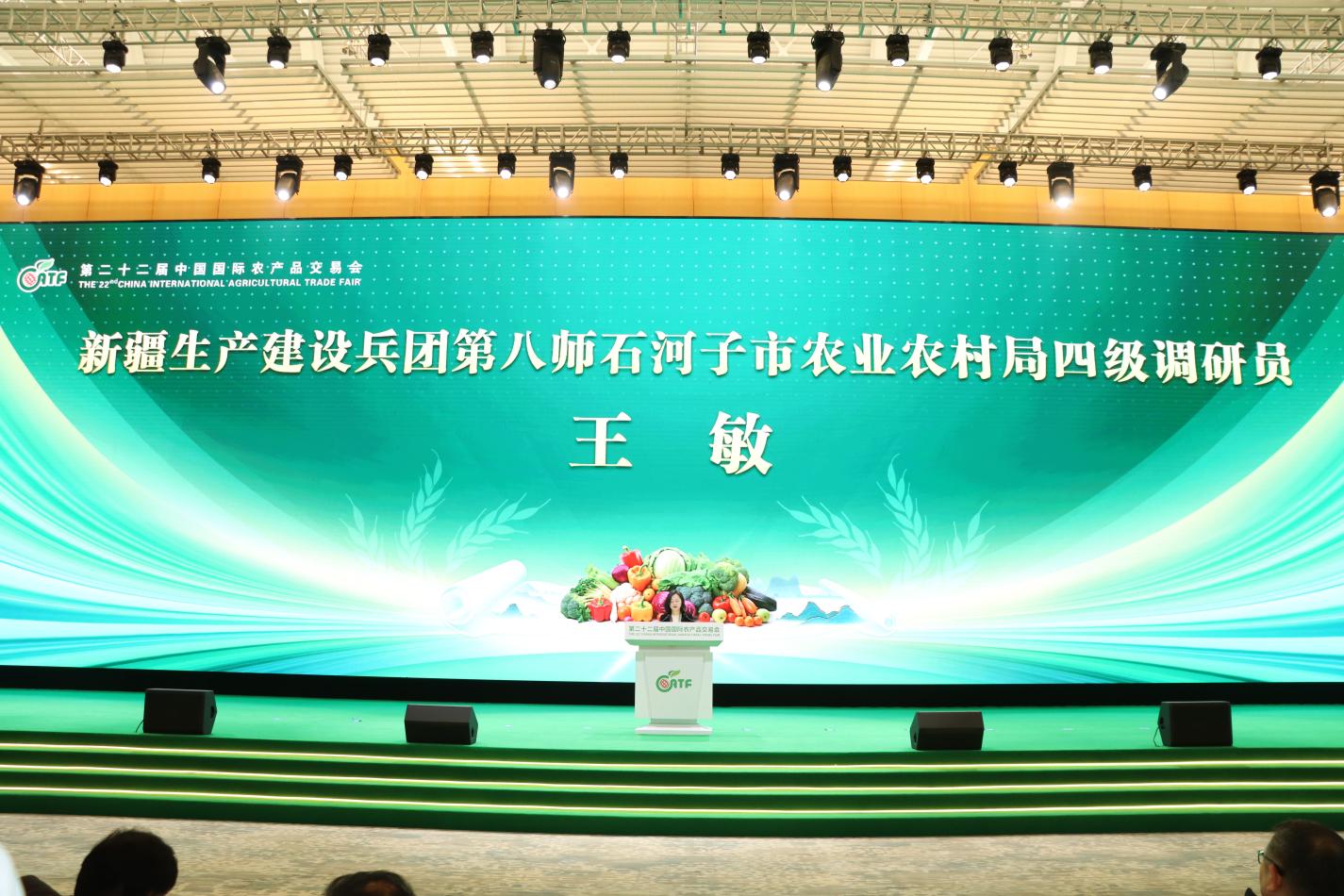 (图:第八师石河子市农业农村局四级调研员王敏在农业品牌活动中推介)