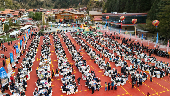 本届旅游季创新采用“1个主会场+2个分会场”联动模式,打破空间界限,实现全域共享。主会场设在国家级传统村落才盖村,在古老藏寨赏非遗、品特色火锅,尽显人文厚度与人间烟火;达古冰川游人中心、西尔镇沙卡村两个分会场则各展其长,以美食为媒、以文娱添彩,共同构成一幅“景城一体、文旅共生”的生动图景,让游客在移步换景间,全方位感受黑水的发展活力与文化温度。