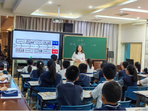 活动伊始,主持人印华美老师简明阐述教研主题与流程。接着,王佳老师执教六(5)班《桥》一课。王老师巧妙地引入“鱼骨图”这一思维工具,帮助学生梳理《桥》的故事情节,将纷繁的叙事化繁为简,搭建起清晰的“内容之桥”。在课堂推进中,王老师注重“读、画、思”相结合,引导学生圈画关键语句,品味语言细节,在扎实的文本品读中建立“理解之桥”。同时,她有效组织了小组合作学习,学生们在讨论与交流中互启互发,共同探究人物形象,成功搭建了师生、生生间的“共学之桥”,展现了扎实而有效的教学功底。