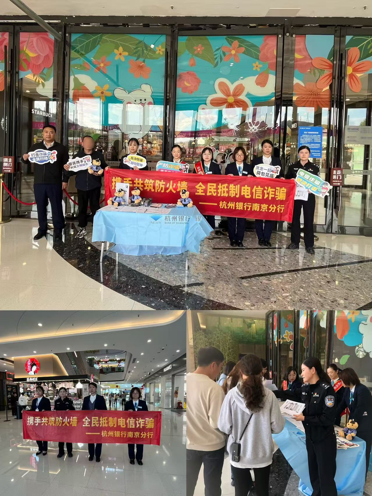 面对当前电信网络诈骗高发态势,杭州银行南京分行积极行动,联合当地公安机关创新宣传模式,将反诈课堂“搬”进人流密集的商业综合体。10月22日,分行在南京万达茂商圈成功举办“携手共筑防火墙,全民抵制电信诈骗”主题宣传活动,通过案例解析、趣味互动等形式,为市民带来一堂生动实用的“防骗必修课”,有效织密了全民反诈“防护网”。