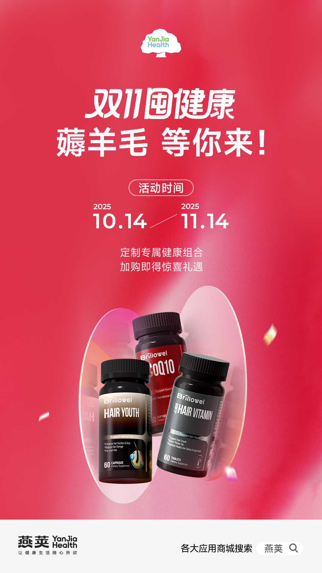 现在就去应用商城搜索“燕荚”,解锁你的双十一健康囤货攻略!这个狂欢季,让燕荚用专业与实惠,为全家的健康保驾护航,把最珍贵的礼物带回家!