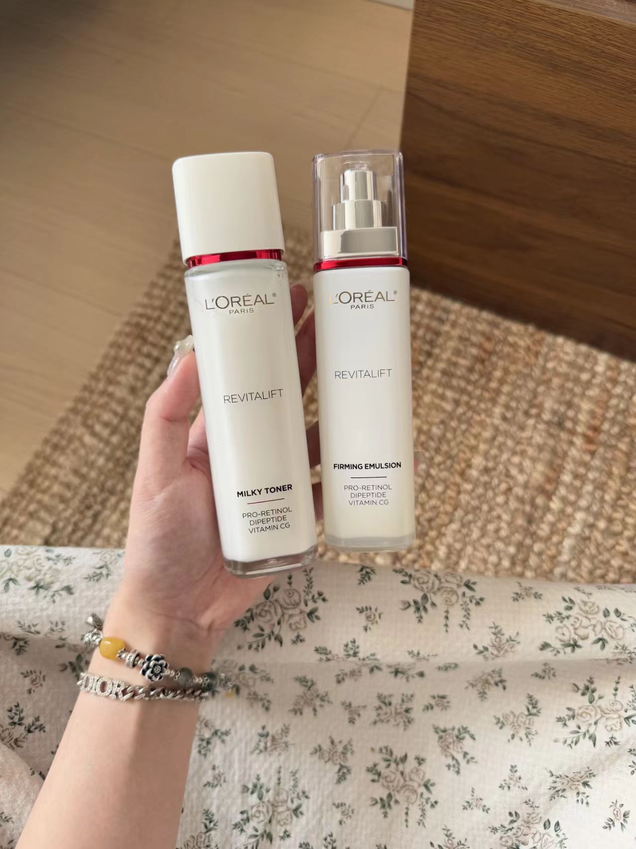 欧莱雅这套水乳的核心优势,是精准瞄准「肌肤松弛 + 皱纹明显」的需求,同时把「抗老功效」和「干皮滋润」深度绑定 —— 它以温和的抗老成分搭配丰润质地,既能紧致肌肤、减少皱纹,又不会让干皮在秋冬觉得干燥紧绷,特别适合 25 + 有初老困扰的干皮用户。
