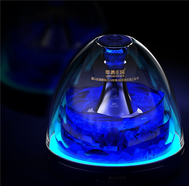 作为郎酒致敬“品质、品牌、品味”的核心载体,郎酒庄园三品节自2021年起每年举办,同步推出“庄园之昼/庄园之夜”专属纪念酒,凭借稀缺性与文化价值,成为行业内极具收藏意义的酱酒产品。此次获奖的2024款纪念酒,在设计上颇具巧思:酒盒犹如果壳、神似苍穹,以三层叠加光影插图,将赤水河左岸的生态环境、酿造产区与庄园建筑融为一体,白昼的山川魅影与黑夜的火树星桥形成呼应,生动诠释了郎酒庄园“不舍昼夜追求极致”的匠心精神。