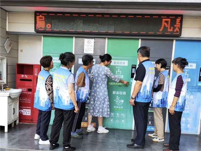 最后志愿者们还对小区收集点进行观摩、检查,确保垃圾收集点及周边环境干净、整洁。