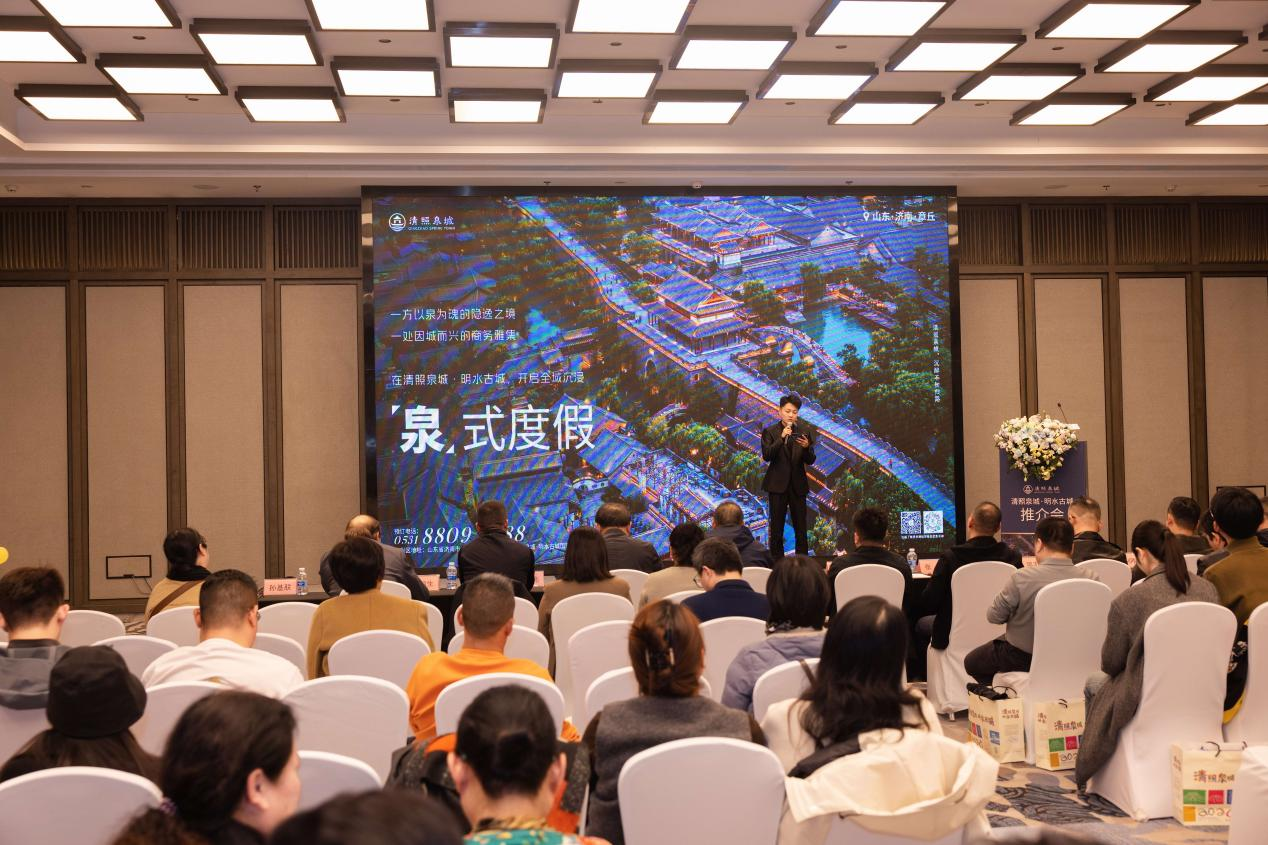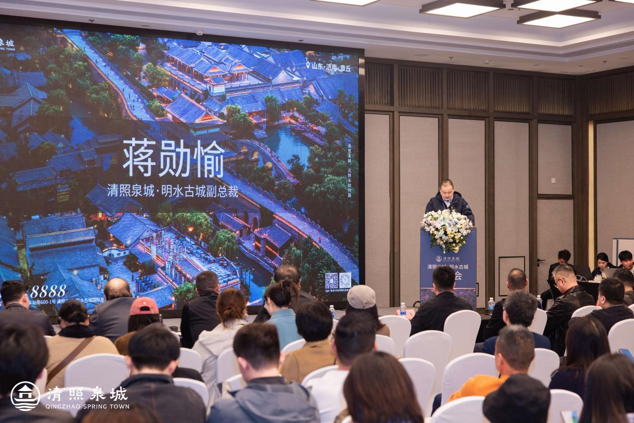 作为本次推介会的点睛之笔,清照泉城·明水古城度假区执行总裁徐飞,向与会嘉宾深入阐释了项目的独特价值与核心魅力。济南素有“泉城”美誉,坐拥七十二名泉,而清照泉城·明水古城正以“天下最美的泉水”为脉络,有机融合墨泉、百脉泉、梅花泉、漱玉泉、金镜泉等六大名泉,构建出“泉水穿城过,人在画中游”的沉浸式体验。