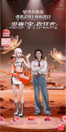 依托JoyAI大模型诞生的虚拟偶像“Aura”成为近期焦点。10月23日京东上新惊喜日当晚,华语乐坛实力唱将华晨宇空降京东青春采销直播间,在火星虚拟场景中,华晨宇与京东JoyAI大模型生成的虚拟偶像 Aura同框亮相——两位恩雅品牌全球代言人,共同开启精彩的跨次元互动,用科技感十足的场景与联动形式,为用户带来打破次元壁的直播体验。