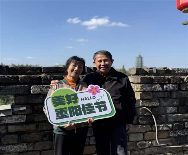 城墙上漫步时,一对老人互相搀扶,步步登高。这不仅是登高,更是他们人生路上又一次共同的攀登。老人留下合照,古老的城砖与现代的城景的融合,仿佛在诉说着恒久的爱意。