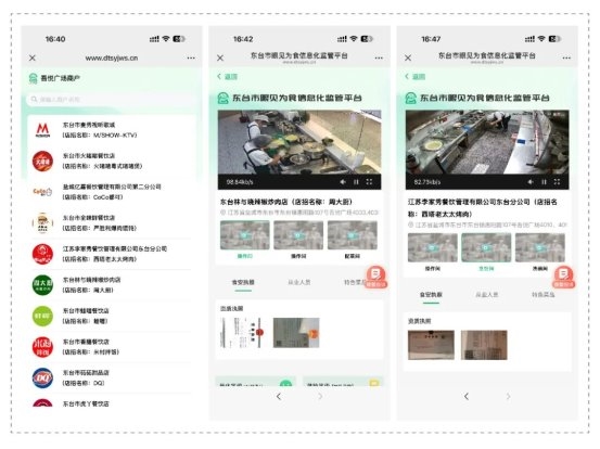 监管端:AI+人工双重监督所有商户的后厨画面,还会同步接入东台市监局的食品安全监管系统,工作人员可远程巡查;同时,系统搭载AI识别功能,能自动检测“员工未戴工帽”“垃圾溢出”等违规行为,实时向商户和监管端推送预警,避免问题积累成隐患。