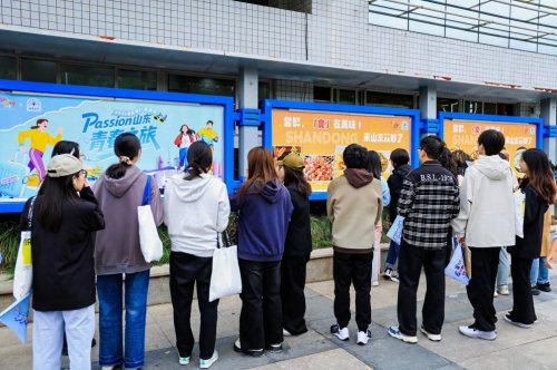 活动现场还设置了“山东文旅宣传栏”,通过系列创意海报集中展示了山东丰富的旅游资源。海报以“来山东就够了”为主题,涵盖了登山、美食、温泉、滑雪、观鸟、打卡等多种体验场景,生动呈现了齐鲁大地的自然风光与人文魅力,吸引众多学生驻足浏览,进一步激发了大家对山东的向往。