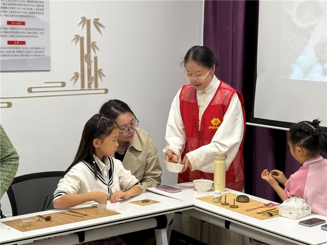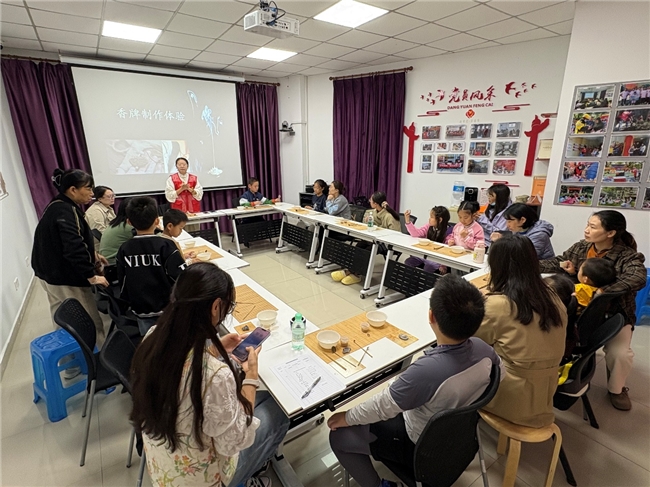 活动开始,红色管家志愿者以生动的故事切入,从香道文化的历史渊源,到香牌的传统制作工艺,再到古人借香寄情的民俗典故,为居民讲解香牌背后的传统文化内涵。大家跟随着老师的讲述感受香道文化的深厚底蕴,仿佛“穿越”回古代文人雅集的场景。