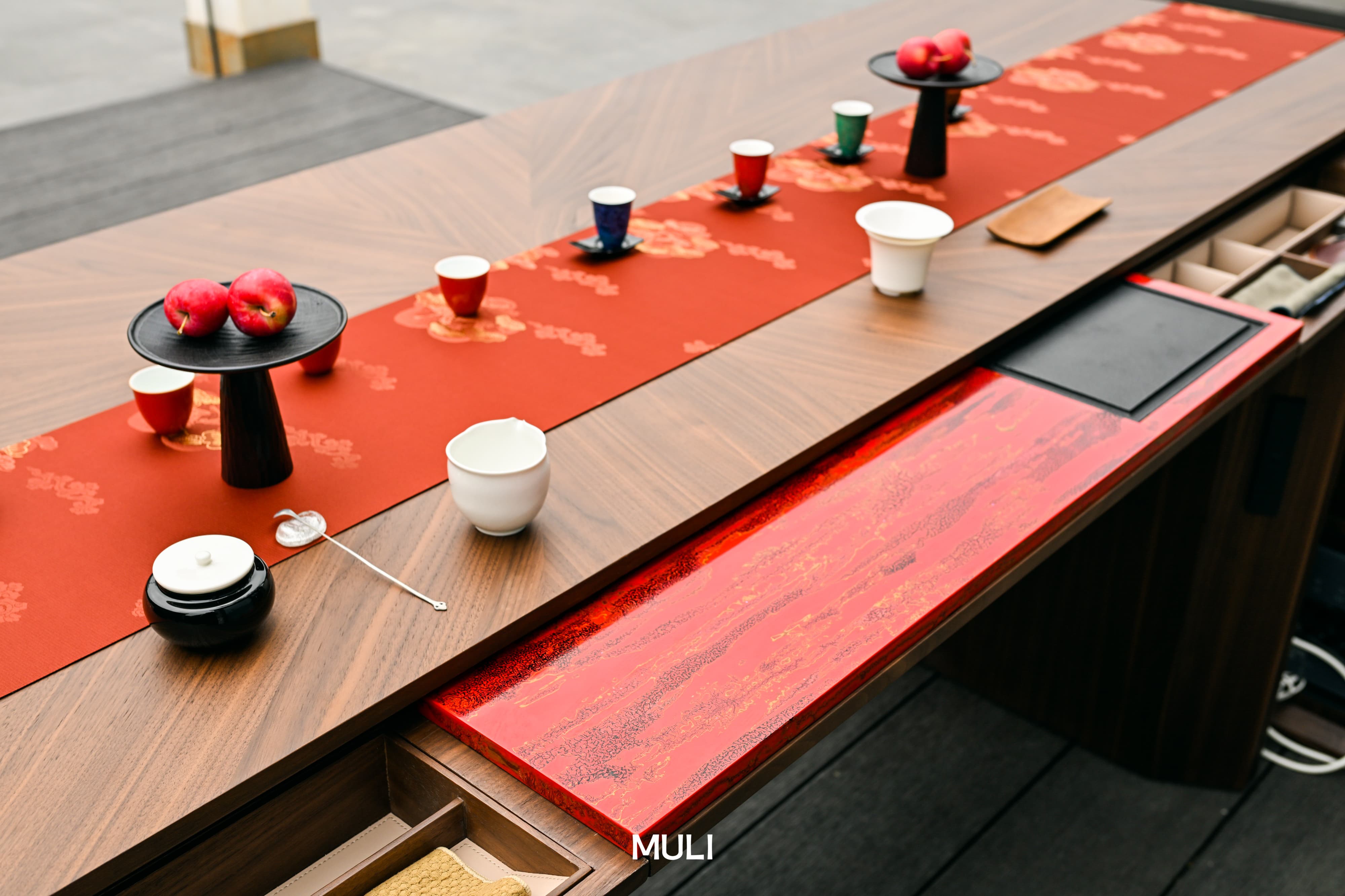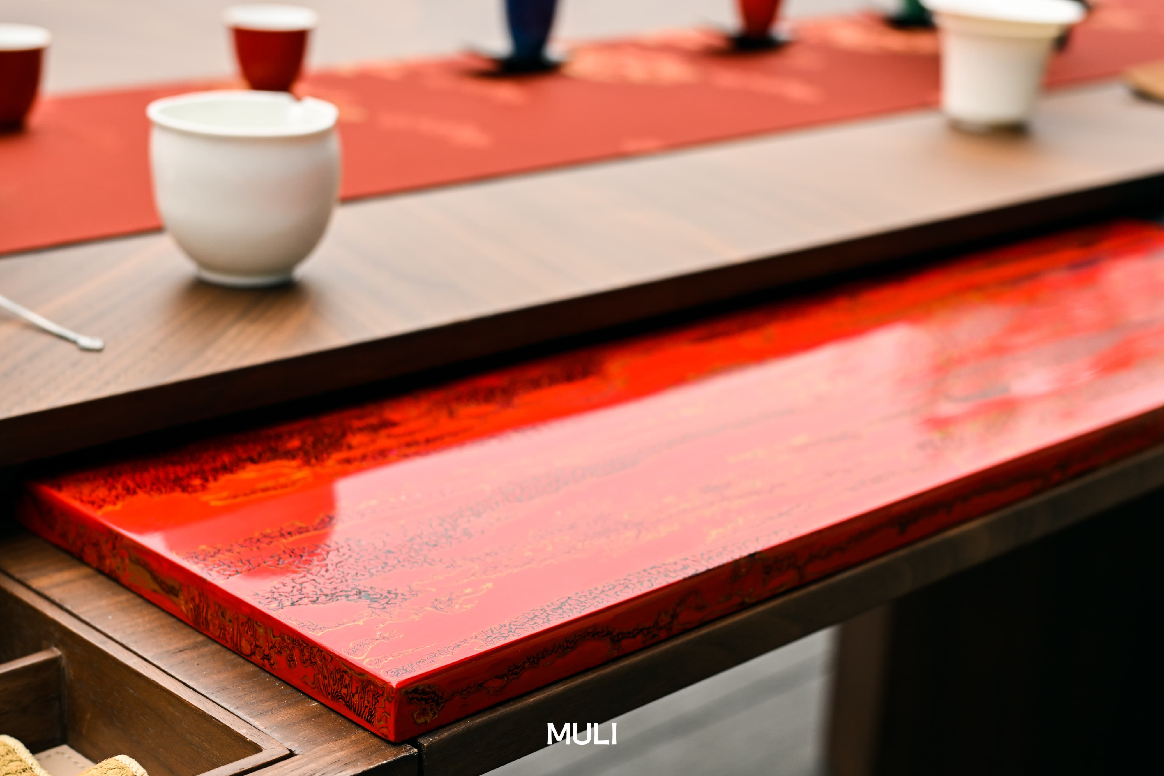 作为中国国家画院访问学者和巴黎设计周中国周特邀艺术家,龍一老师将非遗的大漆工艺与国潮、时尚和艺术结合起来,与木里木外共创了大漆茶桌、大漆餐桌、大漆茶具等作品,让大漆焕发新生,又赋予现代家居深厚的文化内涵与艺术魅力。