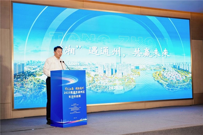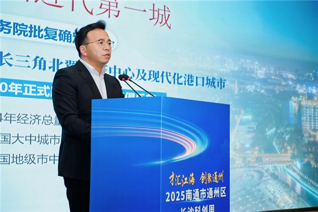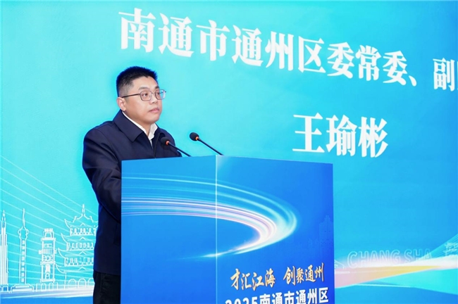 主题活动现场,南通市通州区委常委、副区长王瑜彬发表致辞。他表示,通州正处在国家战略机遇叠加的“黄金发展期”,南通新机场、北沿江高铁等一大批重大交通工程加快推进,为我们插上了“跨越赶超”的翅膀。通州拥有南通市唯一的国家级高新区,始终坚持以“科创引领、人才驱动”为发展主线,已成为全市科技成果转化的“主阵地”、高层次人才创新创业的“强磁场”,在沿江科创带建设中发挥着“领头雁”的作用。我们坚信,依托长沙丰富的科教资源和深厚的研发底蕴,通州必将进一步汇聚高端人才、突破关键技术、做强产业集群,奋力打造长三角区域创新发展的“新高地”。