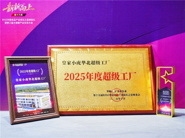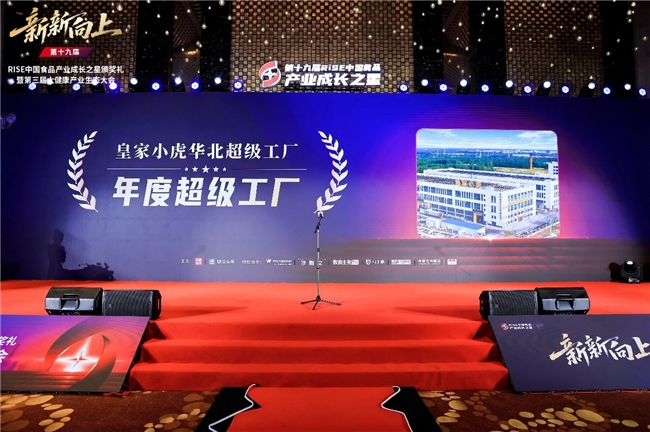 作为秋季糖酒会系列活动中的亮点之一,《新新向上——第十九届RISE成长之星颁奖礼》旨在发现并表彰代表行业先进生产力的企业,大会组委会发起的“年度超级工厂”征集评选,希望评选出一批以极致效率与多维价值创造为核心驱动力,通过技术创新、绿色生产、营养升级与全产业链协同,引领中国食品工业从“基础能力提升”向“价值跃迁”跨越的标杆工厂。本次年度评选中,皇家小虎华北超级工厂与盐津铺子国家卓越级智能工厂、好丽友廊坊工厂等共同获此殊荣。