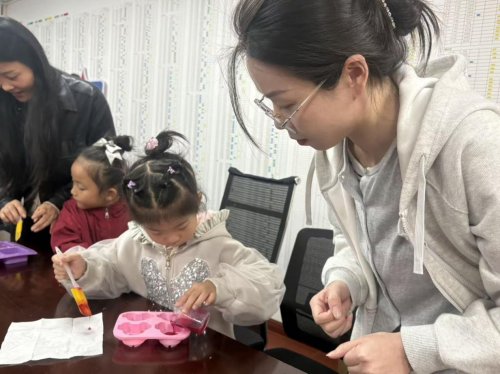 最热闹的当属手工皂制作环节:亲子家庭围在桌前,把透明皂基放进微波炉加热融化,加入滋润的甘油、调上温暖的橙黄色(像极了重阳菊的颜色),再小心翼翼地灌入模具。当一块块带着淡香的手工皂脱模时,孩子们捧着成品笑开了花:“这是我做的重阳礼物!”
