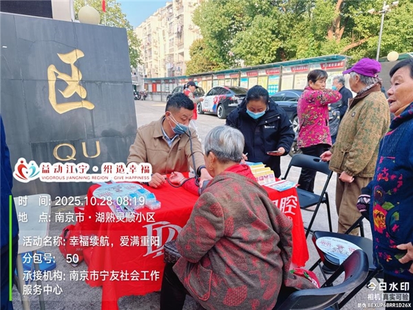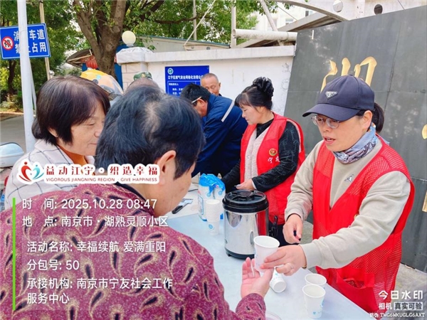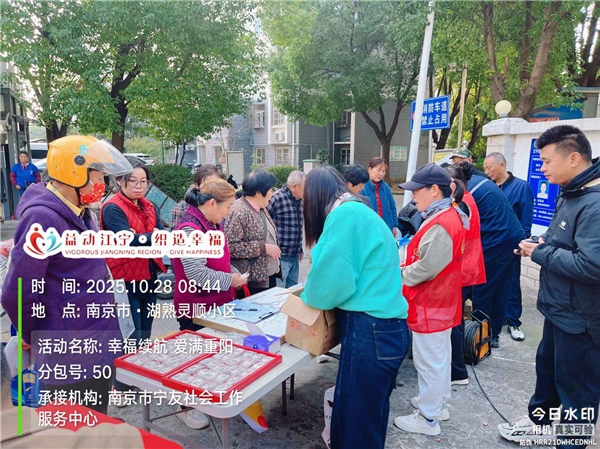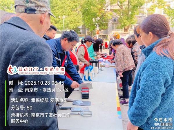 为大力弘扬中华民族尊老、敬老、爱老、助老的传统美德,营造社区温馨和谐的节日氛围,2025年10月28日上午,由南京市宁友社会工作服务中心联合湖熟社区,在江宁区第十一届公益创投项目支持下,于湖熟社区党群服务中心门前广场成功举办了“幸福续航,爱满重阳”主题广场活动。本次活动吸引了社区百余位老年居民热情参与,现场欢声笑语不断,温情洋溢。
