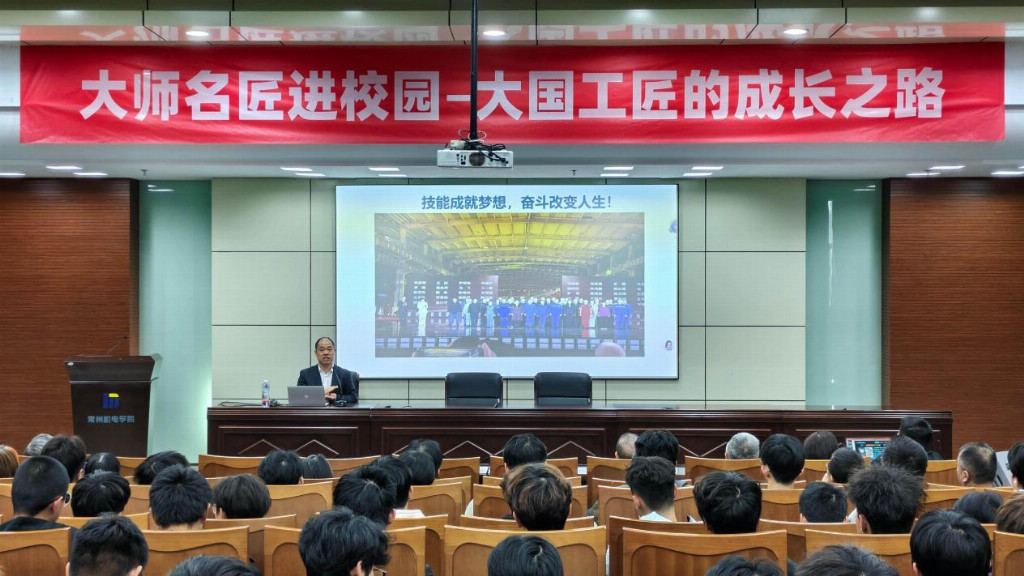 为弘扬劳模精神、劳动精神与工匠精神,引导青年学生坚定凭借技能成才、依靠技能报国的信念,近日,常州机电职业技术学院模具技术学院举办了“大师名匠进校园”活动。此次活动特邀全国劳动模范、国家级技能大师陈亮,以“技能成就梦想,奋斗改变人生”为主题,为师生带来了一场内容丰富、启迪性强的专题讲座。