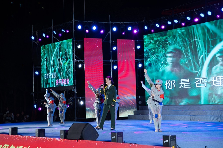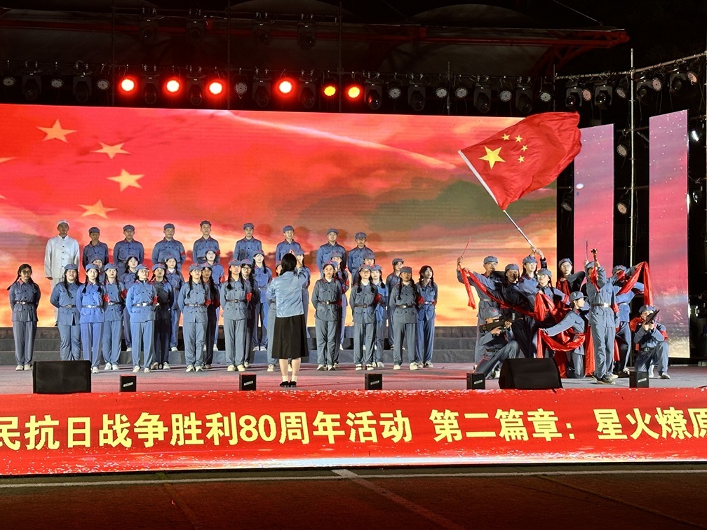 活动现场,节目精彩纷呈,涵盖多个艺术门类:大合唱《松花江上》《在太行山上》唤醒民族记忆,歌伴舞《血染的风采》致敬英烈,情景剧《峥嵘岁月》《星星之火》重现奋斗史诗,民乐合奏《国家》诉说家国深情,川剧变脸等非遗表演更惊艳全场。最后,全校师生共唱《歌唱祖国》,歌声中满含对祖国的热爱与对未来的期许。