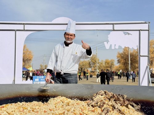在美食区人头攒动,杠子头、面肺子、烤肉、抓饭等特色美食香气扑鼻,成为游客打卡的“必选项”。在抓饭摊位前,围满了群众,大家一边吃美食看美景,一边和同行的家人朋友分享口感。