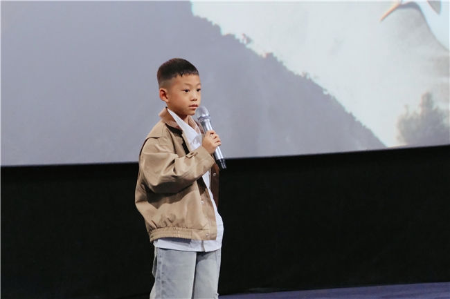 主要演员登台分享创作心得。小演员表示:“通过饰演抗战时期的少年,深刻体会到如今幸福生活的来之不易,也感受到‘艺术救赎’主题对当代青少年的启迪意义。”孩子们真挚的发言,传递出新时代青少年对历史的敬畏与对艺术的追求,成为影视艺术薪火相传的生动写照。