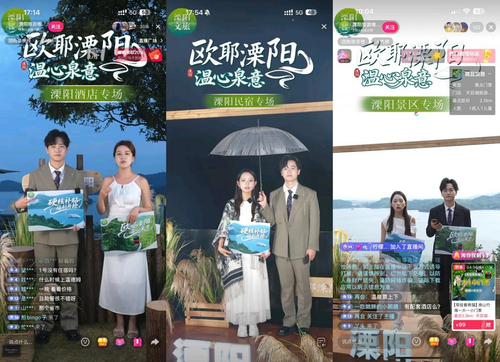 入秋天气转凉,溧阳文旅格外火热。10月中旬,溧阳文旅携手抖音生活服务发起“欧耶溧阳,温心泉意”直播活动。活动中,溧阳文旅联合当地40余家文旅企业,分别聚焦酒店、民宿、景区三大主题,通过每天10小时的不间断直播,推广当地文旅资源。同时,抖音生活服务还通过“跟着苏超游江苏”活动,促进江苏省更多地区文旅消费。