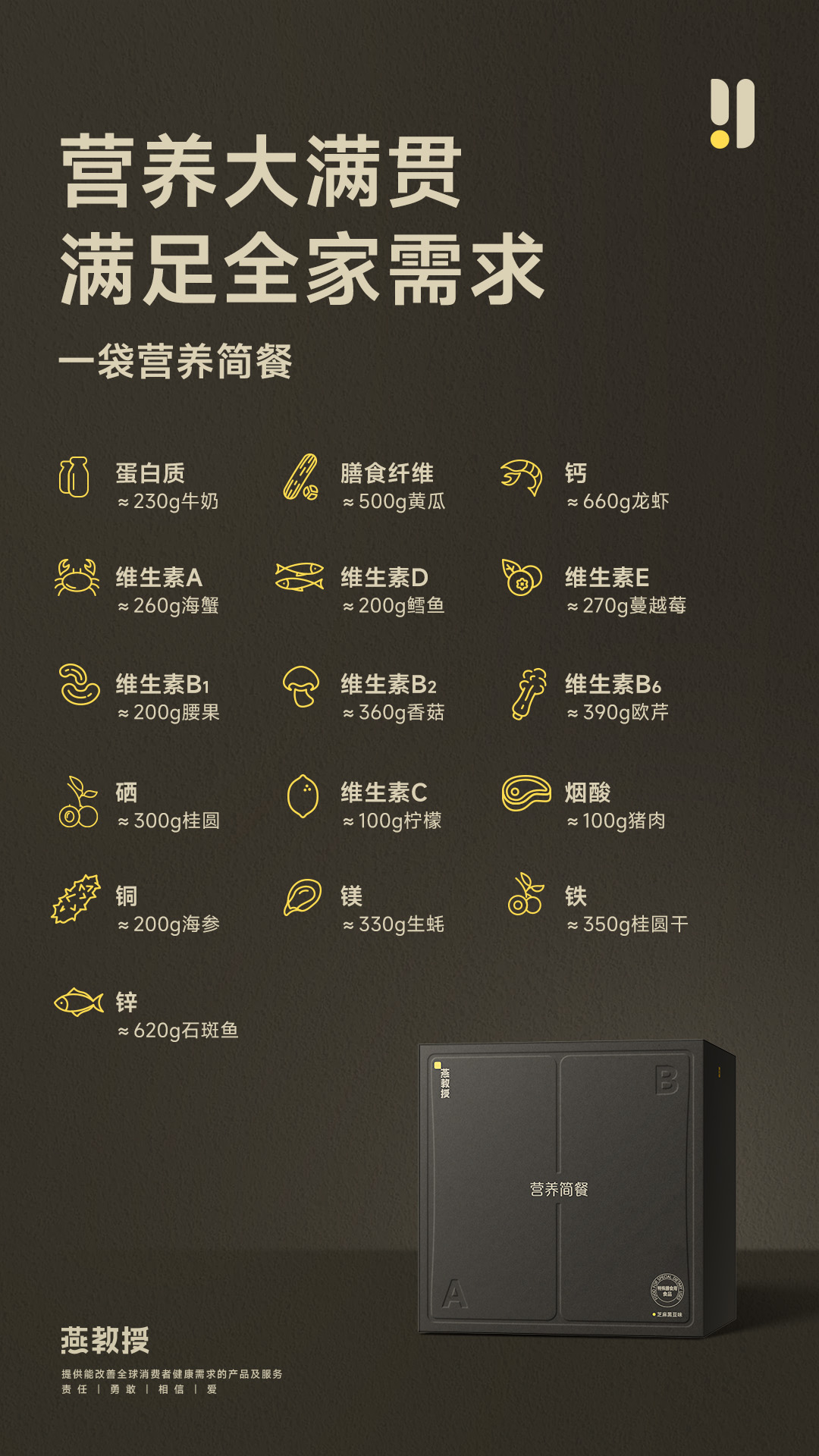 燕教授营养简餐的魅力,不仅仅在于它的减重功效和独特口味,更在于它能够满足全家的营养需求。一份简餐,汇聚了蛋白质、膳食纤维、钙、维生素A、维生素D等众多营养成分,宛如一个营养的宝库。无论是成长中的孩子,需要充足的营养来支持身体的发育;还是忙碌的上班族,希望在有限的用餐时间里获取全面的营养;亦或是注重养生的长辈,渴望通过饮食来维持身体的健康,燕教授营养简餐都能用满满的营养滋补全家,为每一个家庭的健康保驾护航。