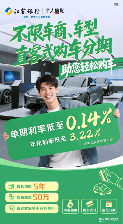 针对汽车这一大宗消费痛点,江苏银行主动联动南京、连云港等地商务局,为当地消费者提供汽车补贴一站式申领服务。双节期间,通过该行渠道申请的汽车补贴达267笔,补贴金额累计91.1万元,直接带动汽车销售额突破5834万元。与此同时,该行推出的直客式购车分期服务,凭借单期利率低至0.14%、年化利率低至3.22%、最高额度50万元、最长期限5年的优势,进一步降低民众购车成本,成功将政策支持转化为汽车消费市场的实际增长动力。